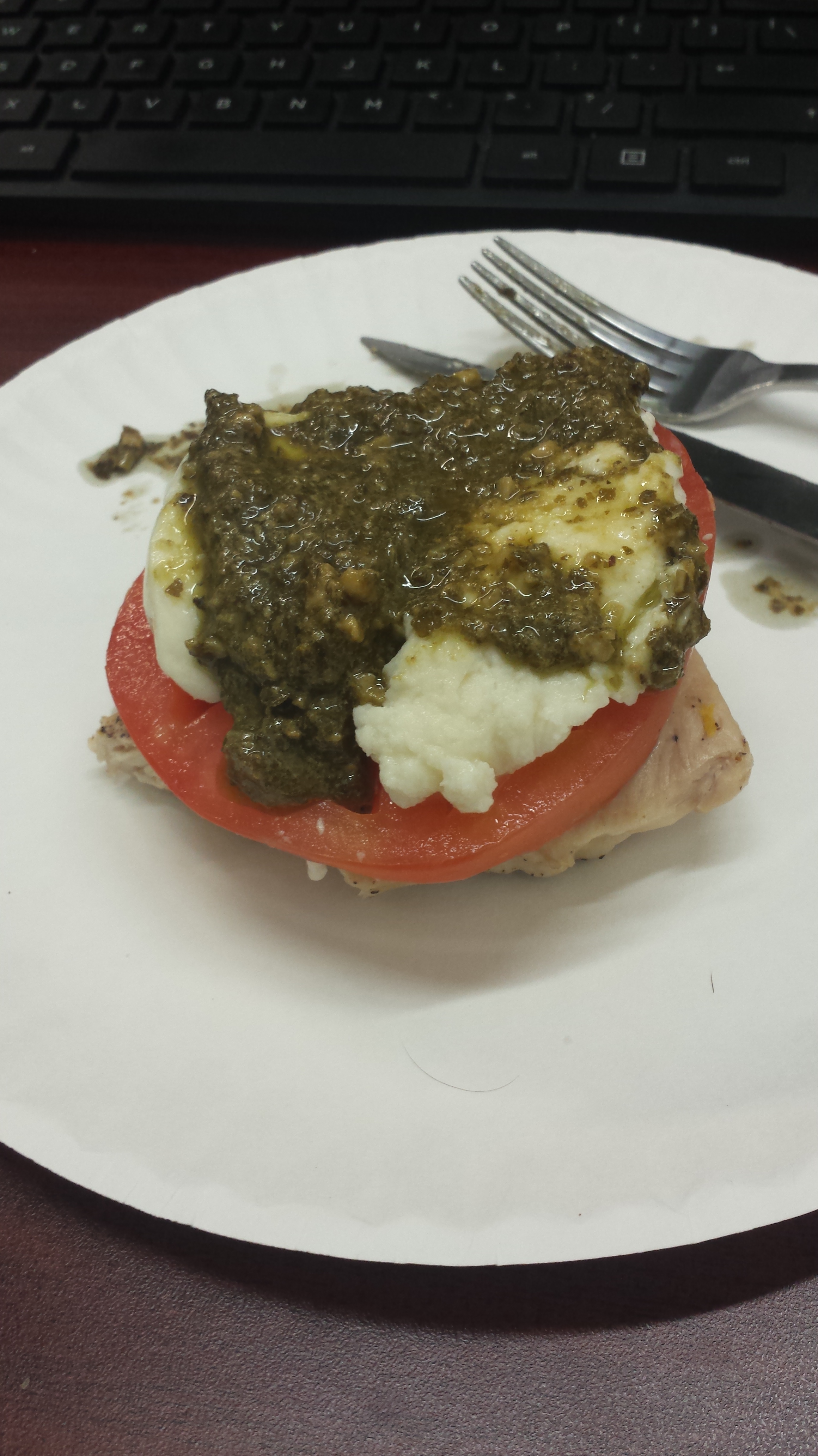 On the upside, I’ve discovered that vegetables aren’t so bad, even though I’ve always been averse to most of them. Onions and peppers have been a recurring ingredient in the meals that Jenn and I have cooked up this week, and I never thought I’d see the day where I’d admit to almost liking them. Furthermore, you really don’t have to sacrifice taste to make a satisfying, healthy meal. There’s actually a lot of flavor in nature, and normally I went looking for the kind that was conjured up in a lab somewhere. We made an awesome “Grandma’s” tomato sauce, the type that your old Italian grandmother would simmer and stir in a pot for two days before you finally got to eat it. That was used as a topping for the tasty turkey meatballs that we made, and on our whole wheat tortilla pizzas, which also featured a bit of mozzarella and Parmesan cheeses, and onions and peppers that were sauteed in garlic. We’ve made a caprese salad, with fresh mozzarella, juicy tomatoes and basil pesto. One of our favorite meals (aside from the pizza) were the pineapple chicken skewers, which consisted of pineapple, onions, peppers, and chicken marinated in a soy sauce/sesame oil concoction. At first, I wasn’t sure how I’d feel about hot pineapple, but I love the fruit and it still tasted the same, char marks from the grill and all.