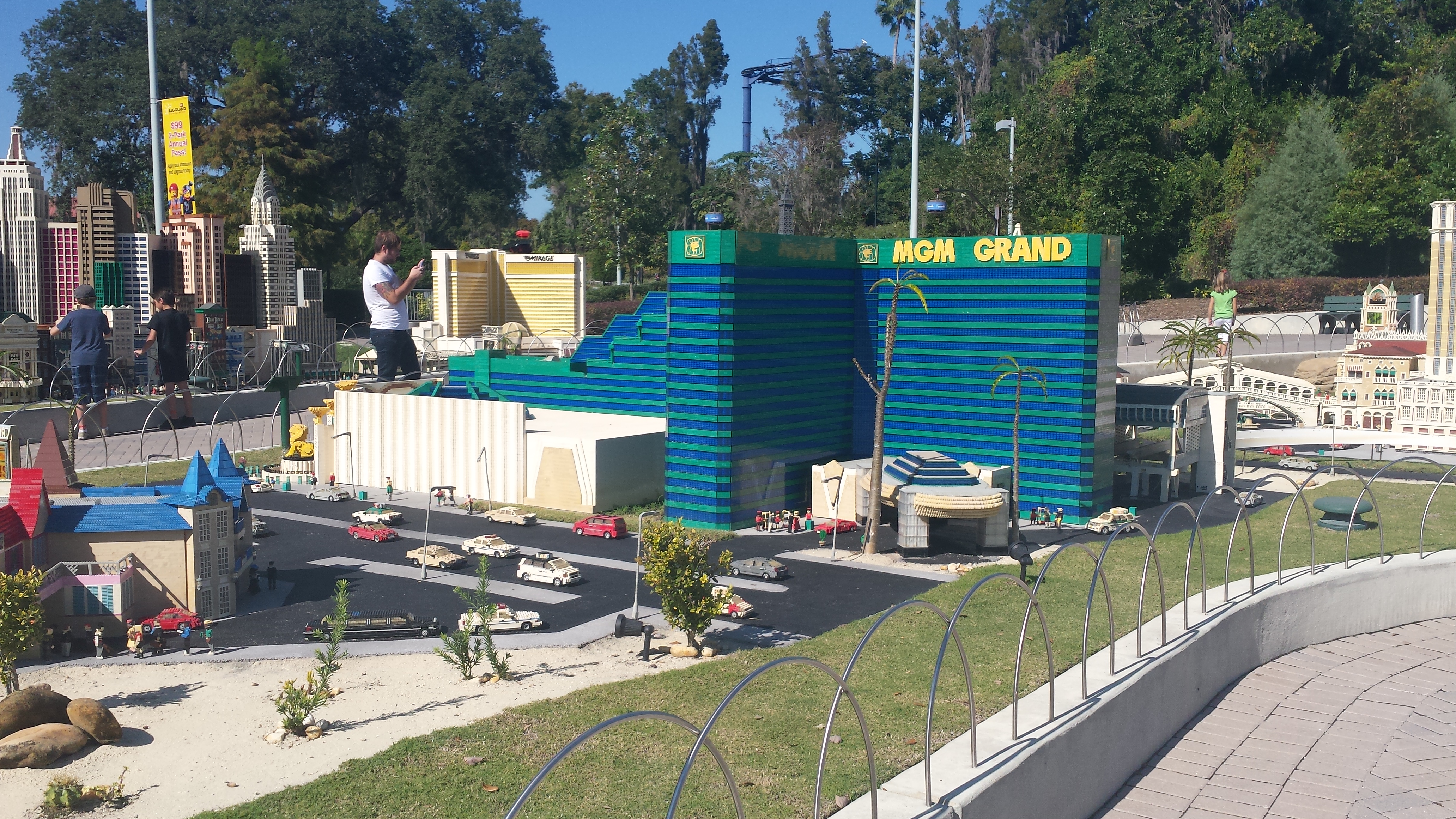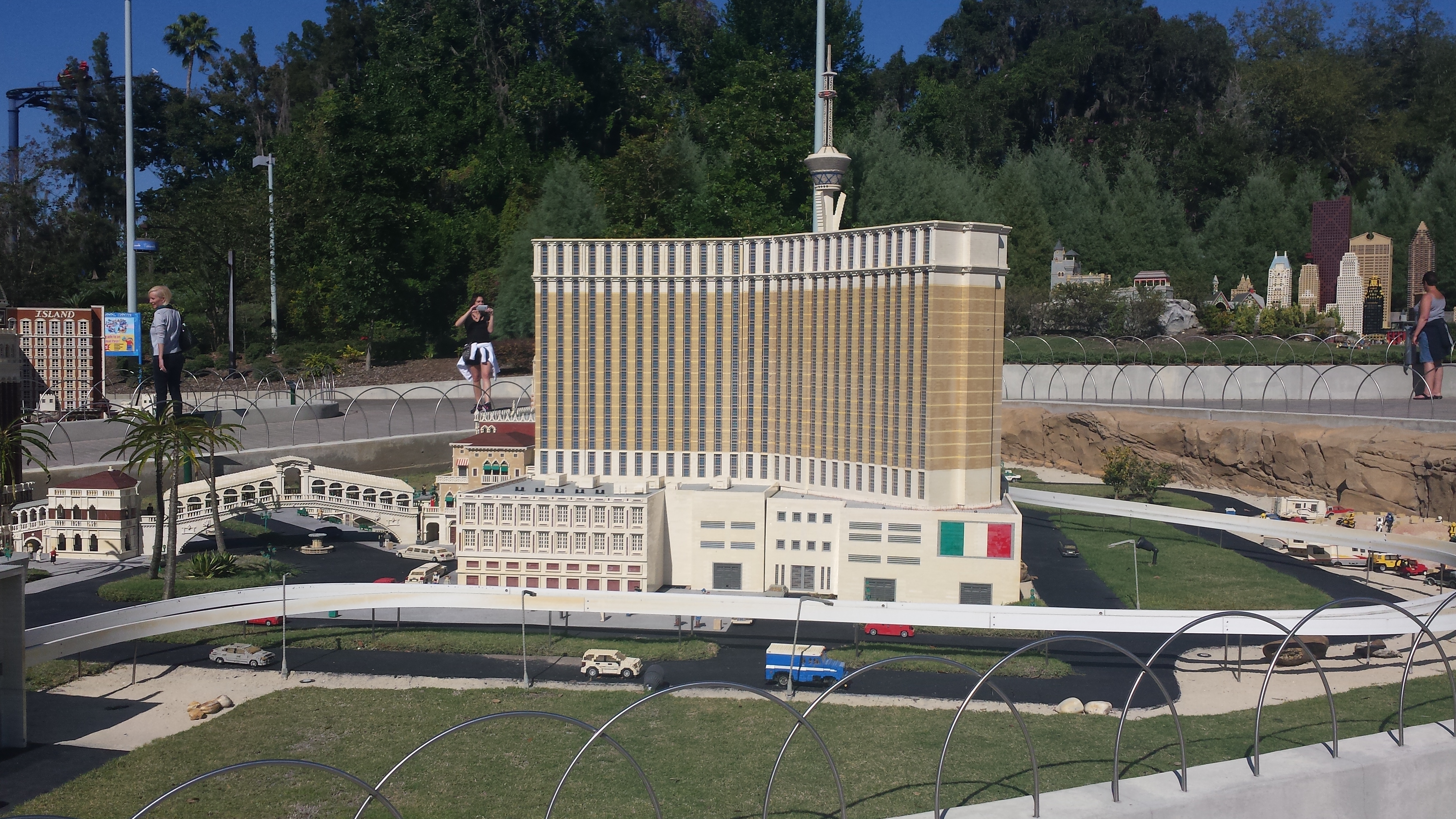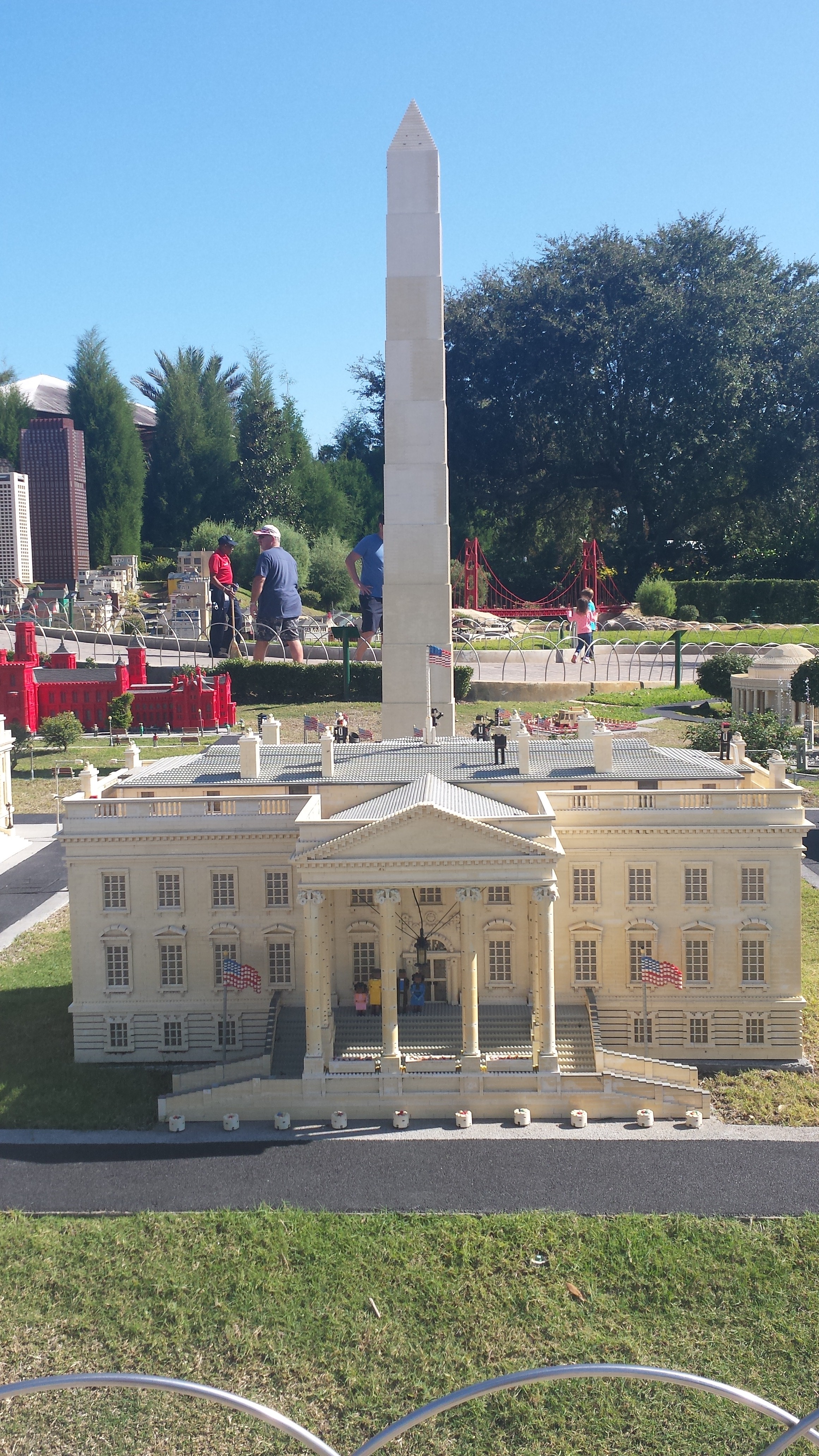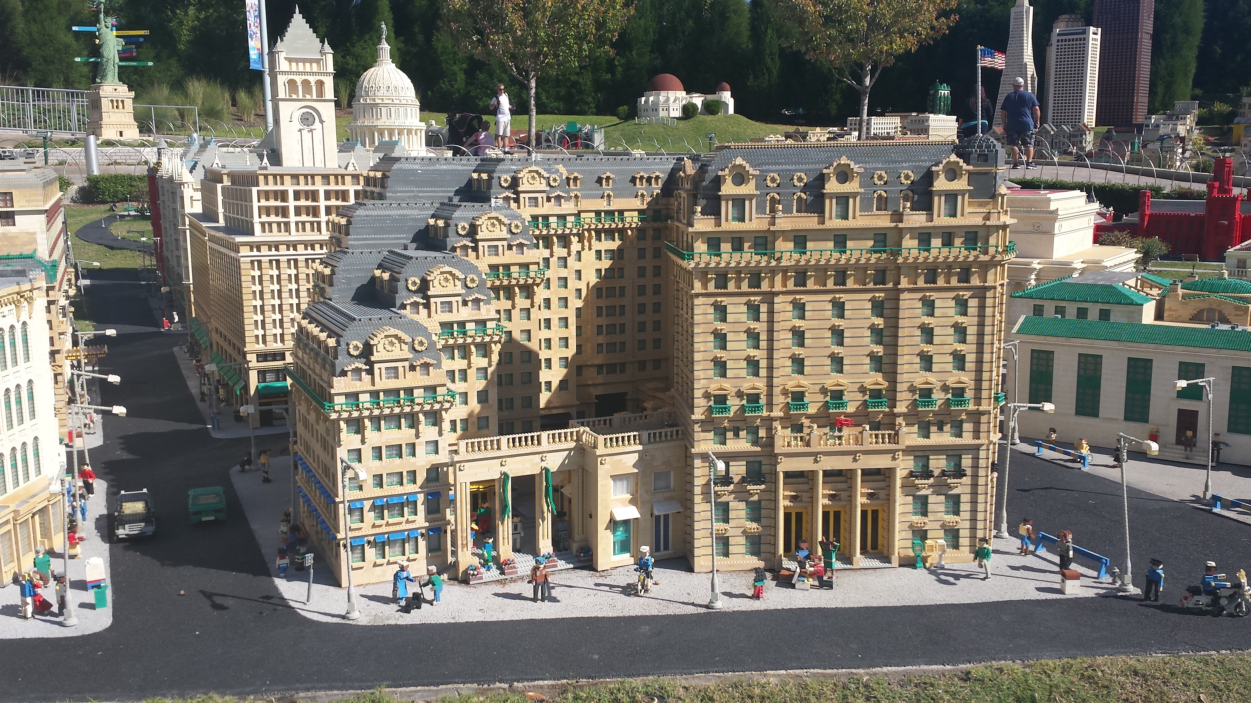 Cityscapes from Miniland, including The Empire State Building, the Statue of Liberty, Grand Central Station, the Capitol Building, the White House and the Washington Monument, the Mirage and the MGM Grand in Las Vegas, the Golden Gate Bridge and part of San Francisco, the Daytona International Speedway, and more, all built entirely out of Lego pieces!