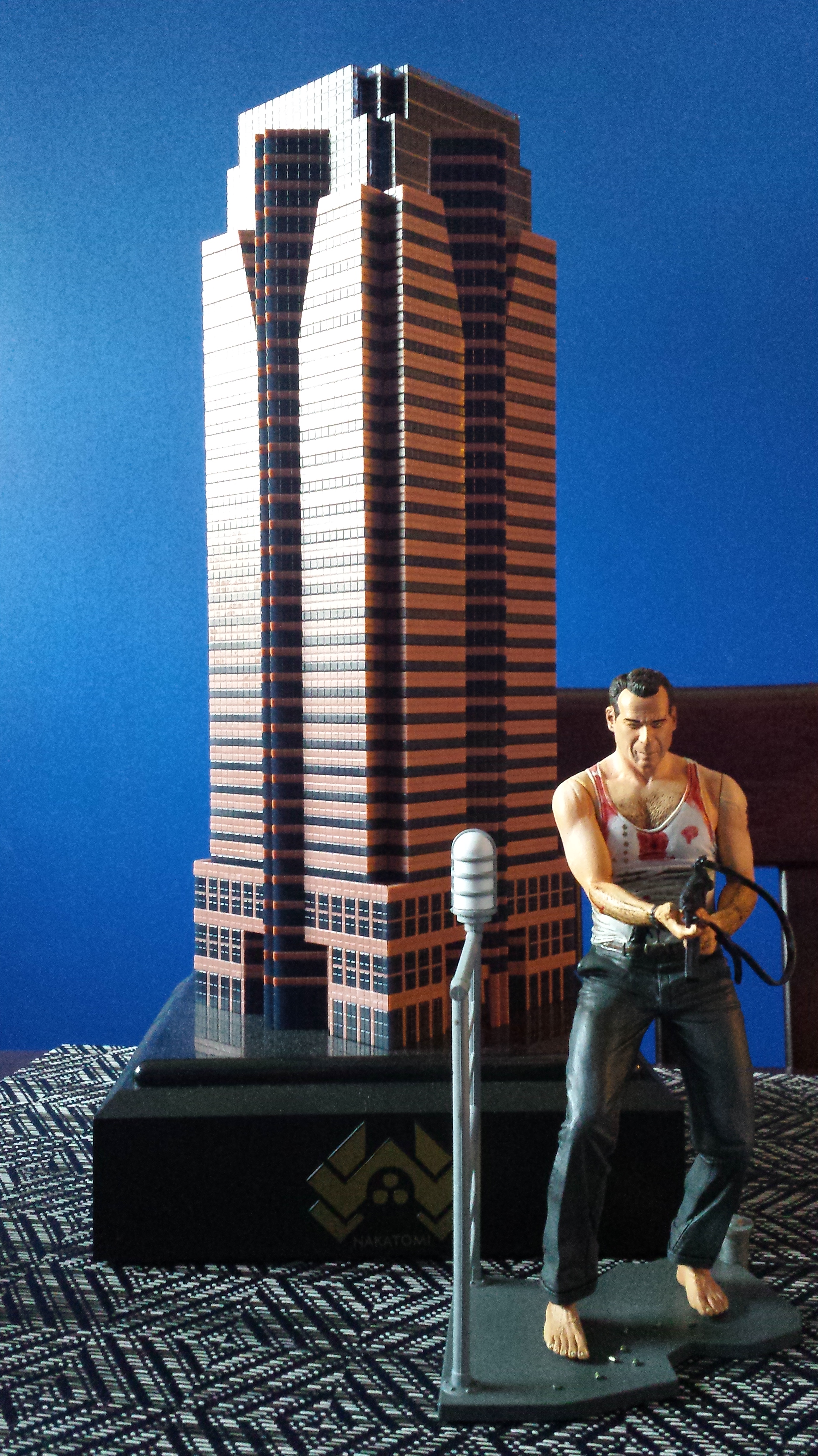 To make this even better, my friend Cory bought me the Die Hard Blu-Ray box set for Christmas, which came with an awesome replica of the Nakatomi building where the first movie was set. I normally don’t do this, but I decided, based on the condition of the package and my desire to display the figure alongside my new Nakatomi Plaza replica, to remove Mr. McClane from his plastic prison. With such great detail, it is only right that he should be freed from the cloudy, scratched box. So it is written, so shall it be.